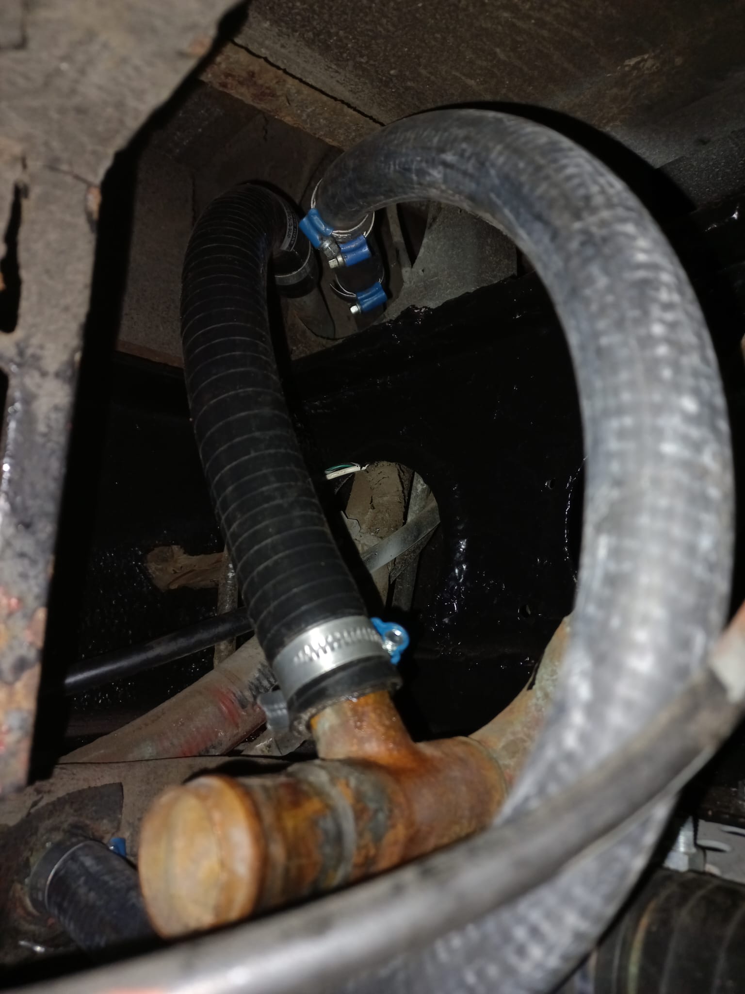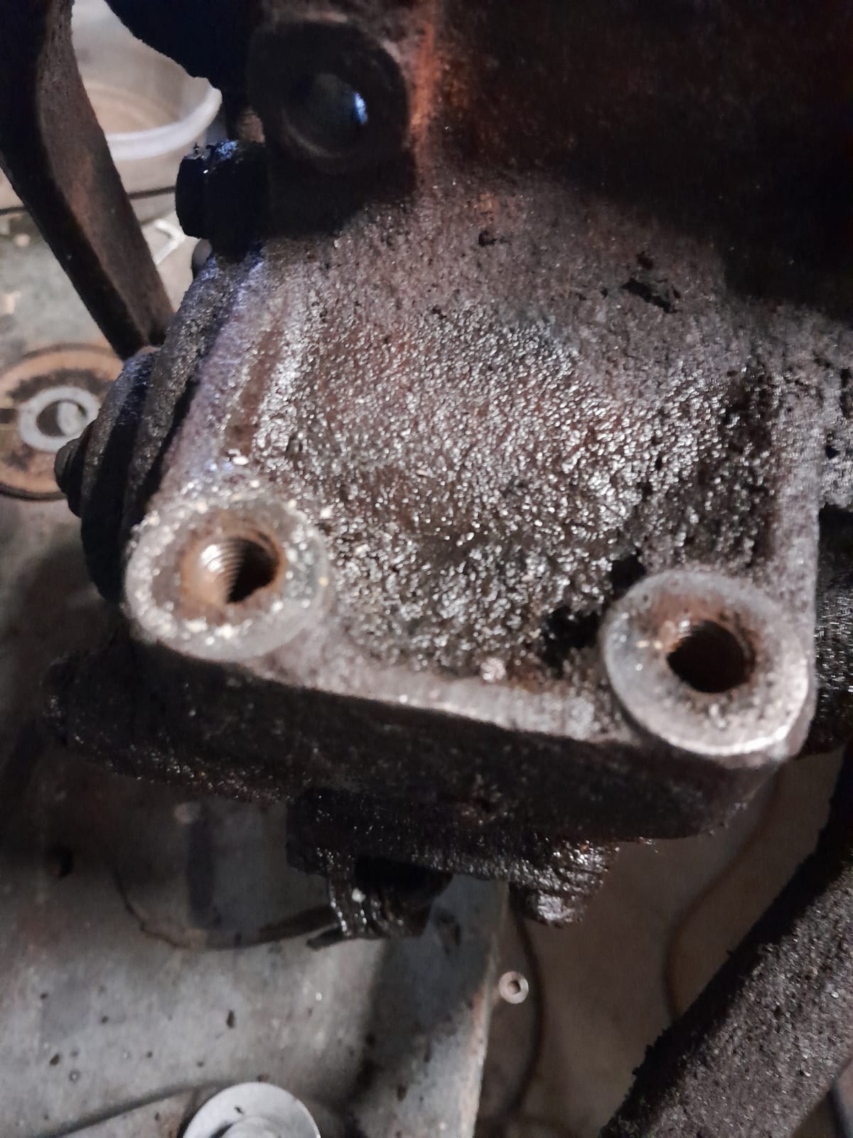 (1) Hier zat de veerpen (2) in de zinkspray (3) achteras (4) chassis op zijn kop mbv de motortakel.