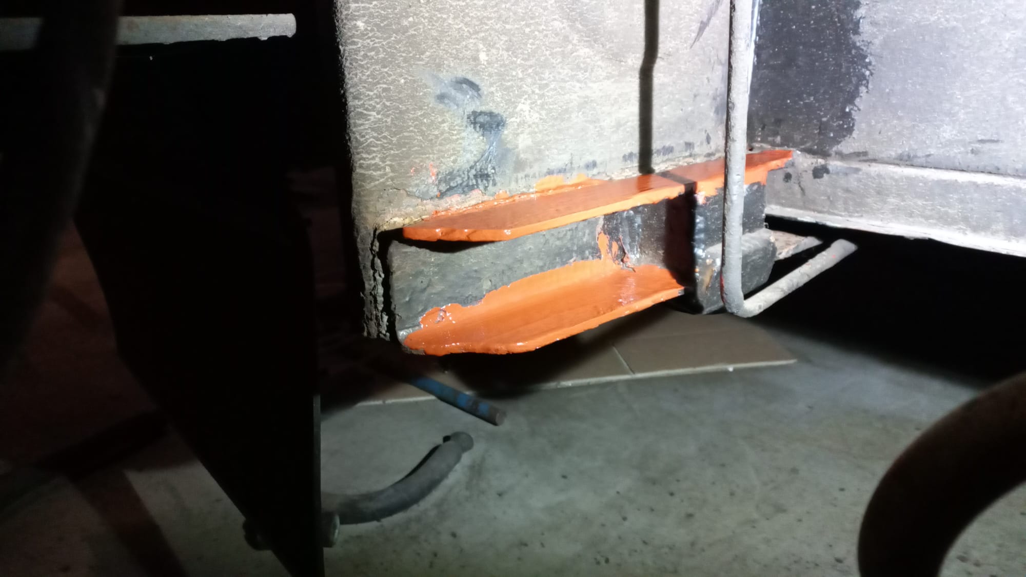 Er is een nieuw stuk metaal op maat gemaakt dat t.z.t. zal worden ingelast. Helaas begaf het lasapparaat het zodat (ook) deze klus zal moeten wachten totdat het lasapparaat terug is.