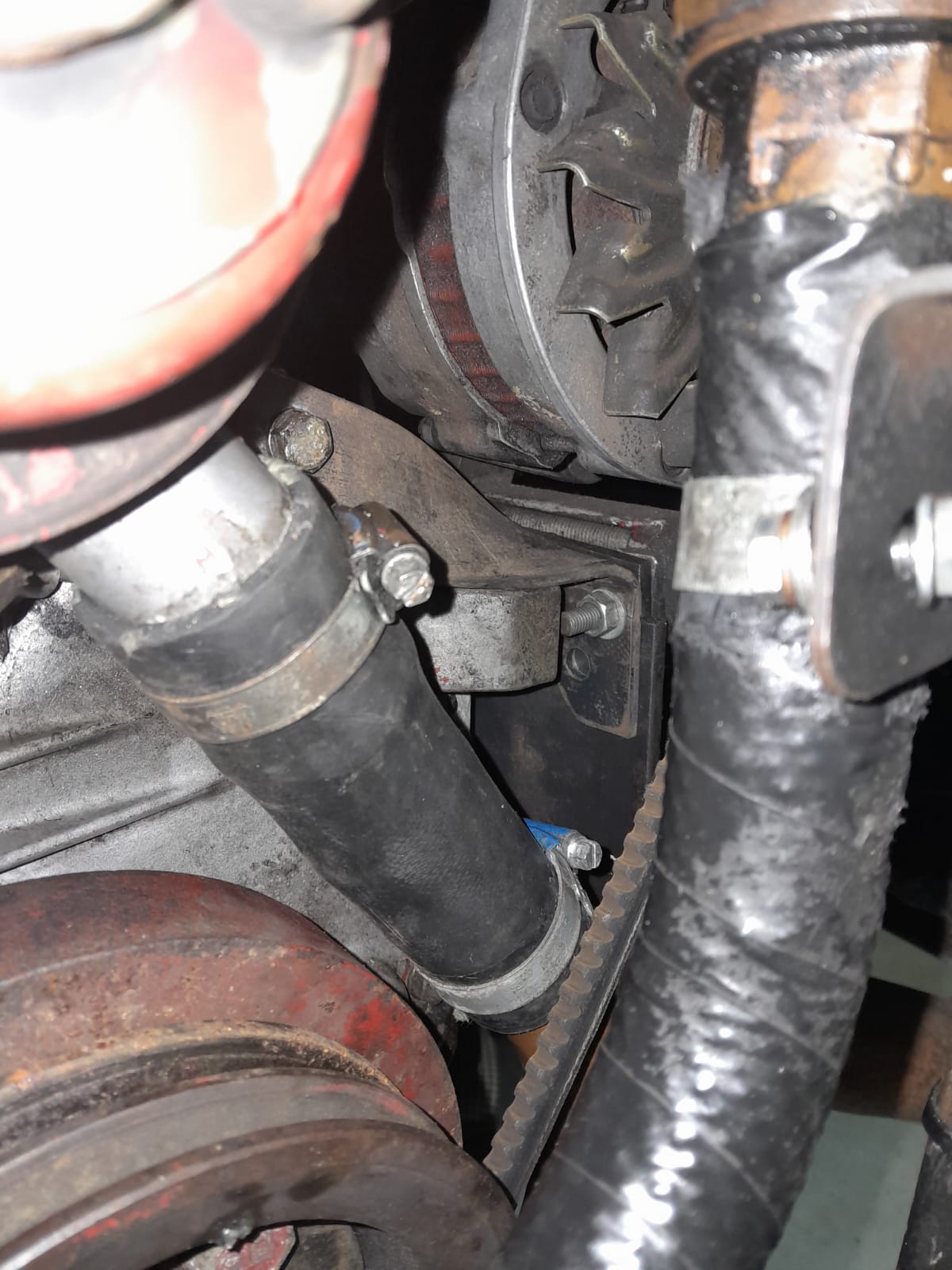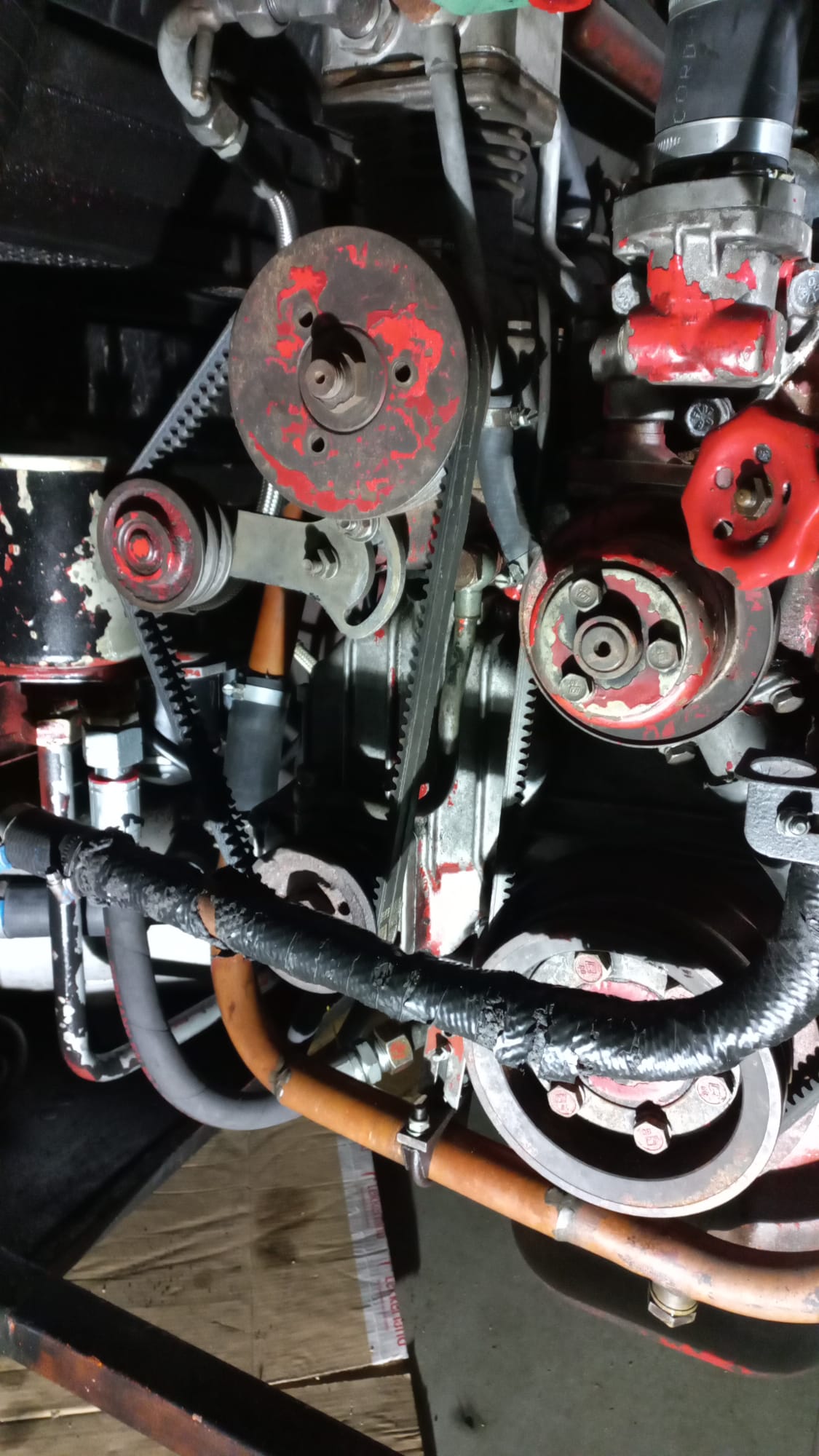 Rest nog “slechts” het monteren van poelies, rubber riemen, koelwaterbuizen…..